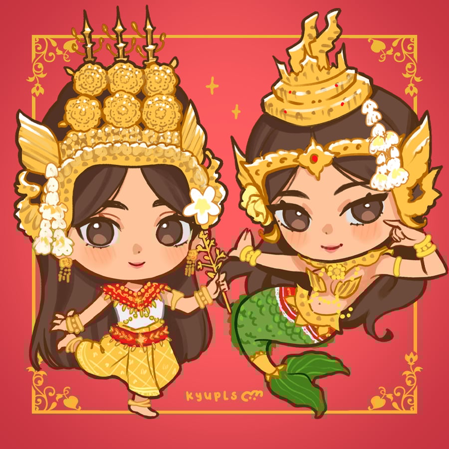 Mythological beauties turned into keychains~ These are based on my interpretation inspired by historical Khmer artwork!